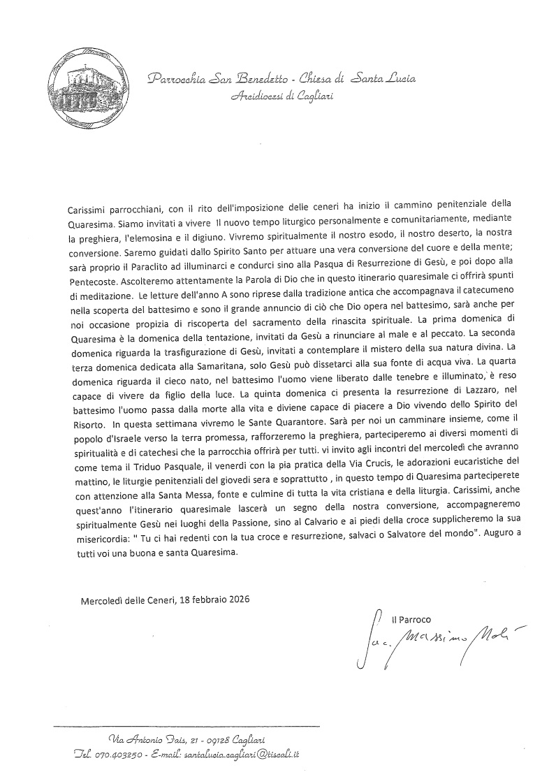 Parrocchia San Benedetto Cagliari – Chiesa di Santa Lucia Con il Mercoledì delle Ceneri, diamo …