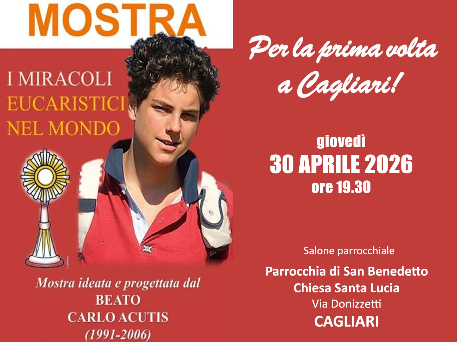 Evento: Mostra “Miracoli Eucaristici nel Mondo” ideata dal Beato Carlo Acutis. Luogo: Salone parrocchiale della …