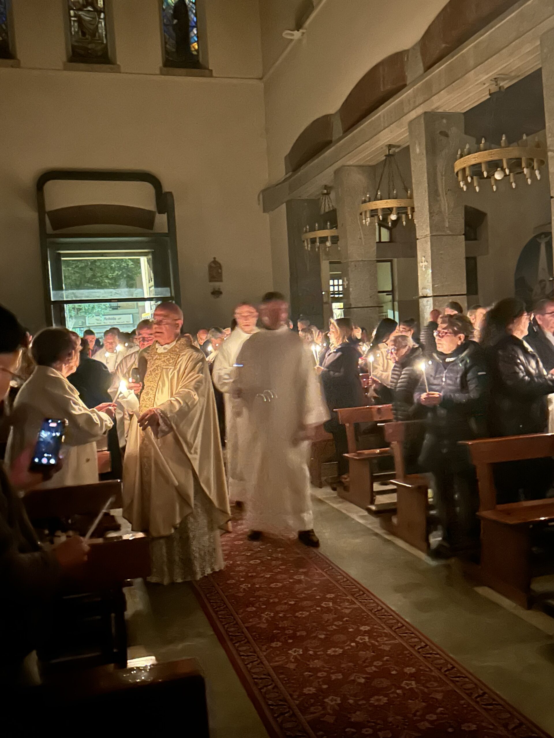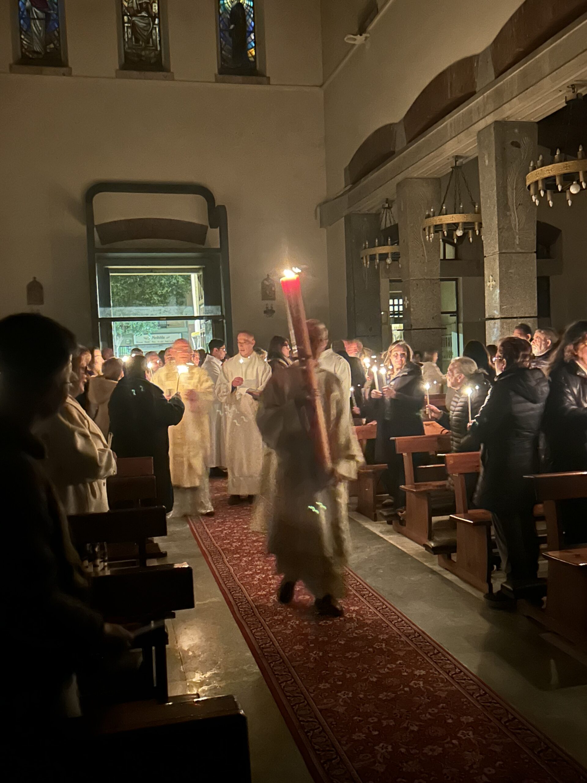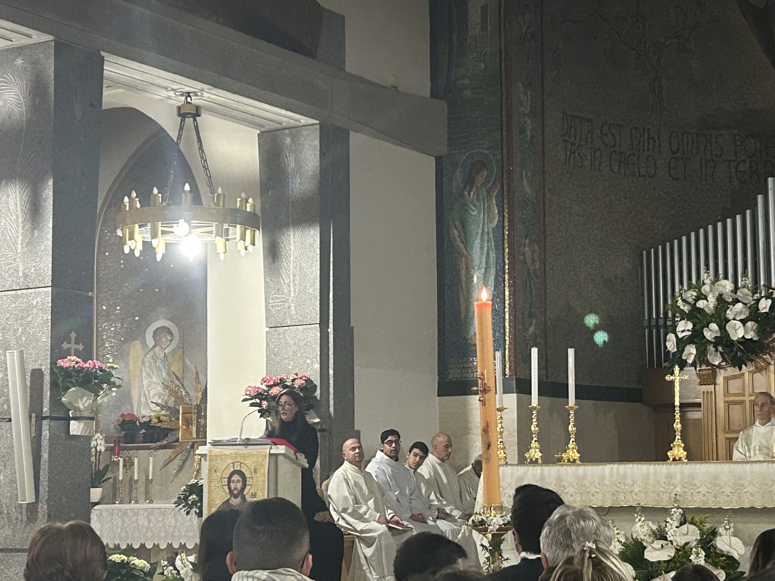 Durante la Veglia abbiamo celebrato con grande gioia la Risurrezione del Signore. Un momento particolarmente significativo per tutta la comunità è stato quando tre catecumeni hanno ricevuto i sacramenti dell’iniziazione cristiana: Battesimo, Eucarestia e Cresima.