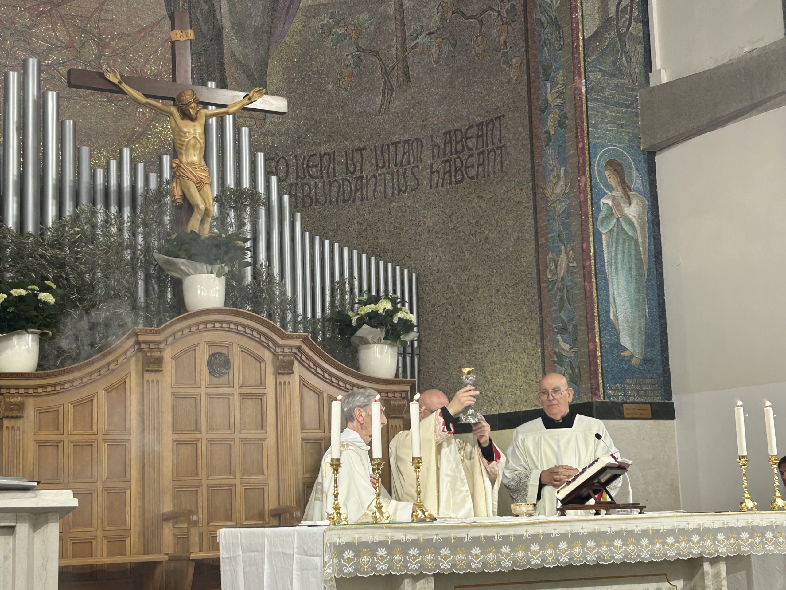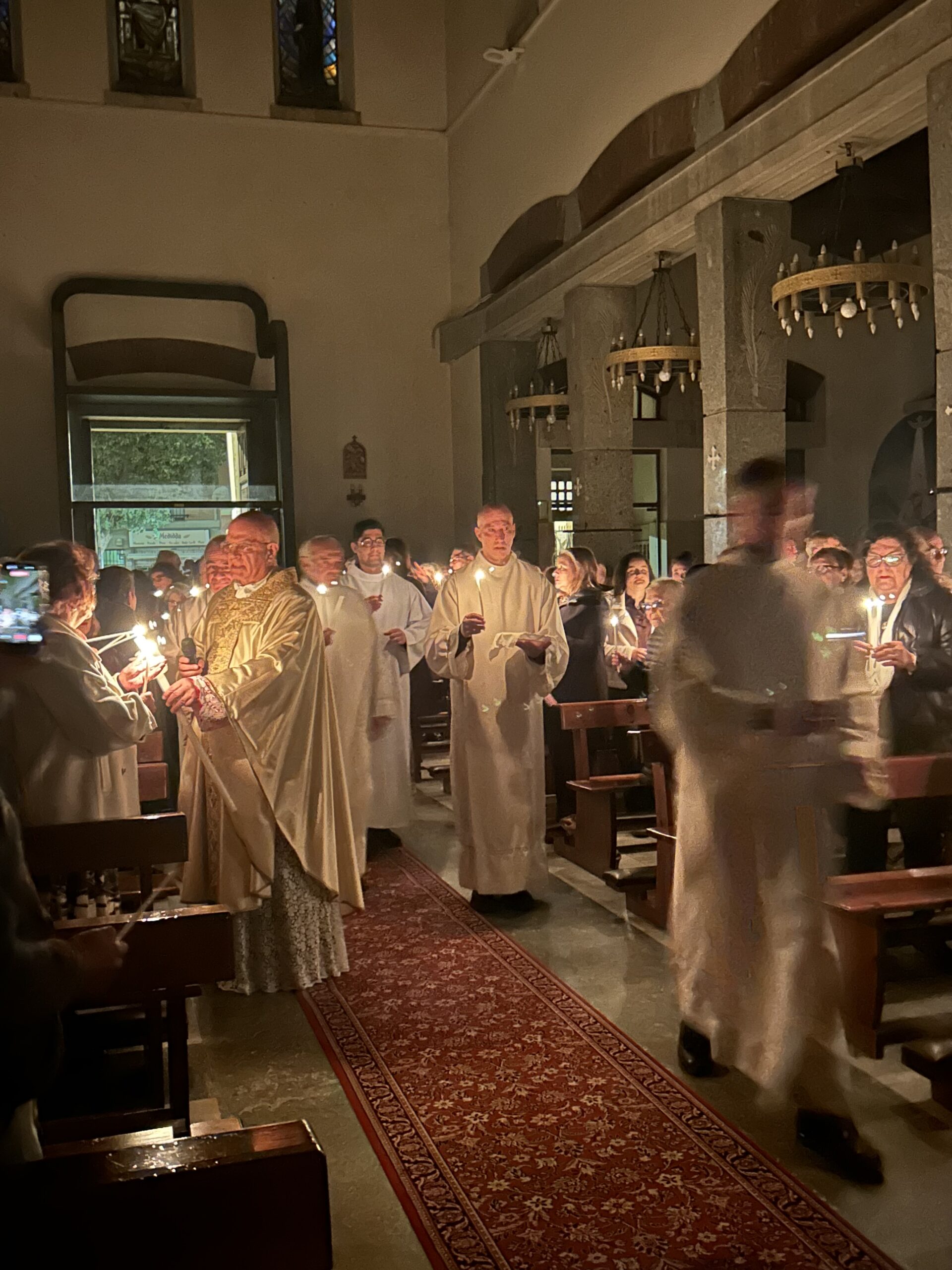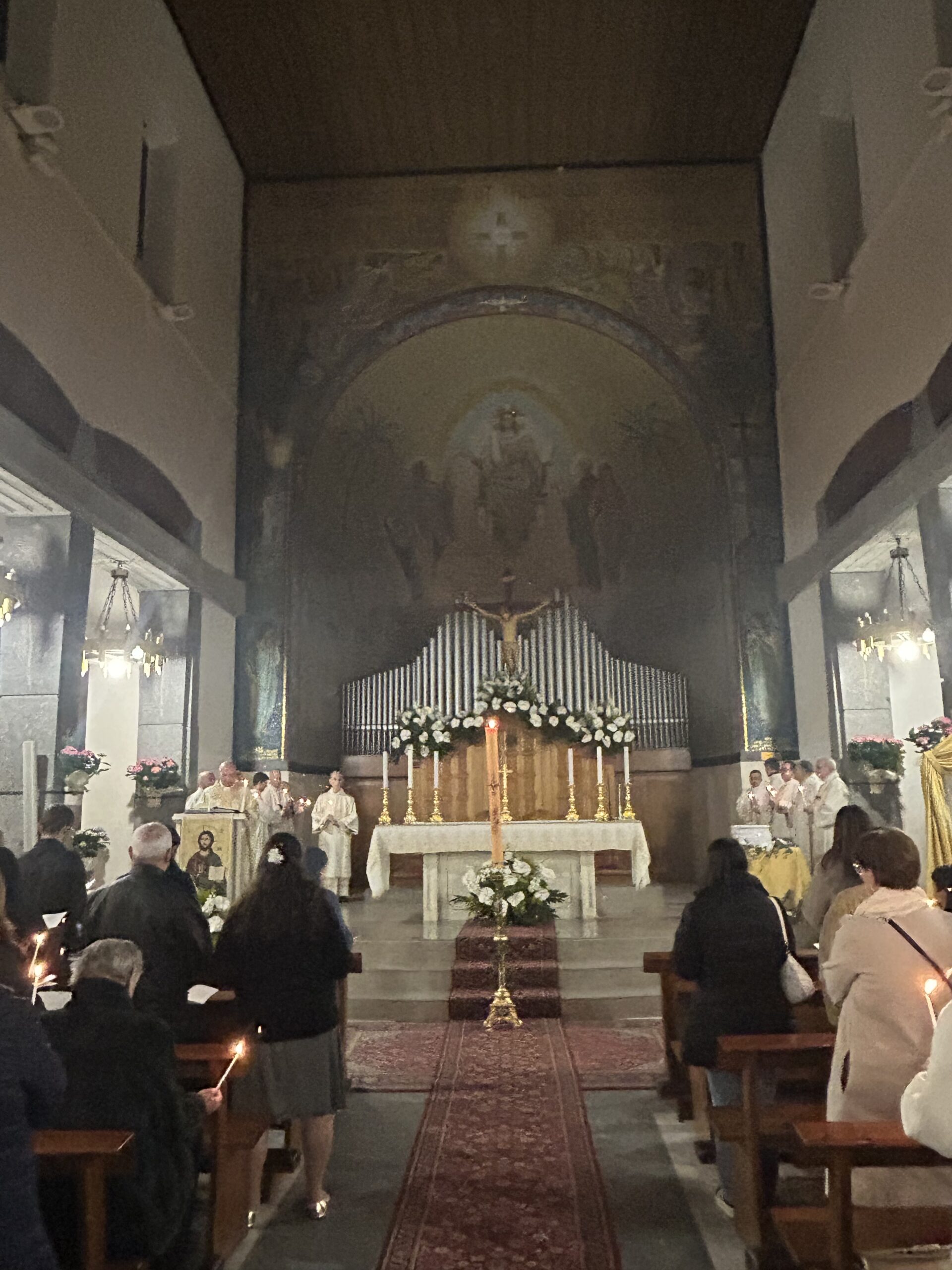 Durante la Veglia abbiamo celebrato con grande gioia la Risurrezione del Signore. Un momento particolarmente significativo per tutta la comunità è stato quando tre catecumeni hanno ricevuto i sacramenti dell’iniziazione cristiana: Battesimo, Eucarestia e Cresima.